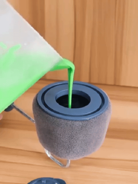 Basta abrir a tampa, colocar a tinta no reservatório e começar a pintar. A tinta é liberada de forma uniforme no rolo, garantindo cobertura perfeita sem respingos.